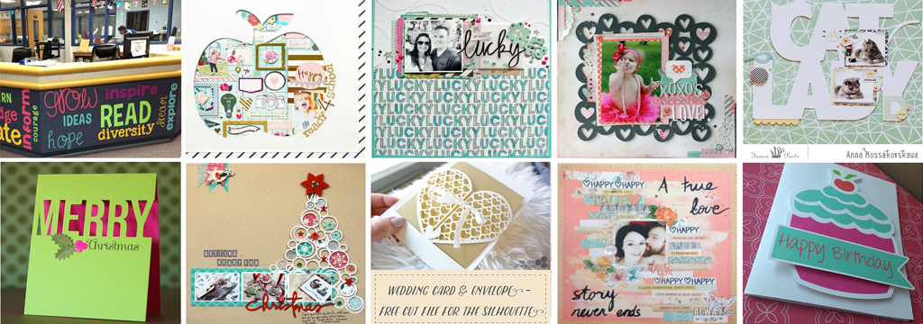 disegni o scritte con fantastici effetti grafici, da ritagliare per ottenere cornici, biglietti di auguri, scatolette regalo, album fotografici, titoli per scrapbooking, modelli di carta...